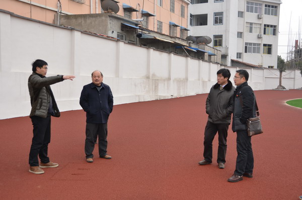 检查组向校长徐抗震了解了学校结束工作情况,随后又实地查看了校舍及教学设施,对校园存在的安全隐患一一指出,并提出了具体整改意见。在该校在建的塑胶运动场工地现场,王德喜就工程施工过程中的的注意事项及要求对陪同的学校相关负责人作了具体交代,他要求学校要继续加大工程后期的施工监督力度,保证工程建设质量达标。