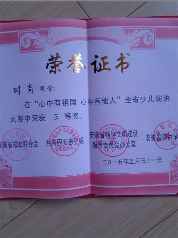 我校时尚同学在“心中有祖国 心中有他人” 全省少儿演讲大赛中获得三等奖的好成绩