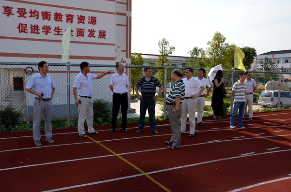 在中心小学本部,调研组实地查看了刚刚竣工验收的塑胶运动场建设项目,向校长徐抗震从项目规划、资金配备及施工过程进行了详细了解,并就场地的使用及面向社会群体开放等方面提出了相关具体要求及看法。