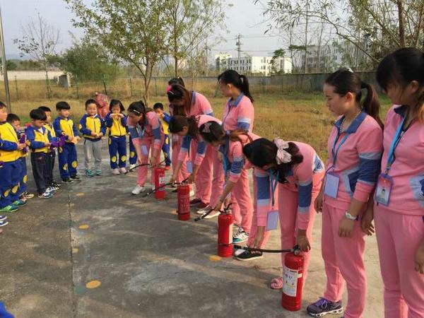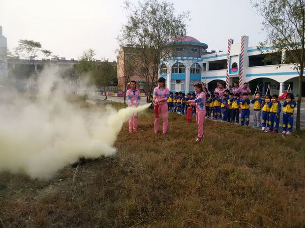 活动前,该园园长钟道莉为幼儿和教师讲解了相关消防安全知识,介绍了灭火器的使用方法;接着,教师们根据自己掌握的灭火知识现场进行灭火演示,很快扑灭了燃烧的两堆大火。(钟道莉)