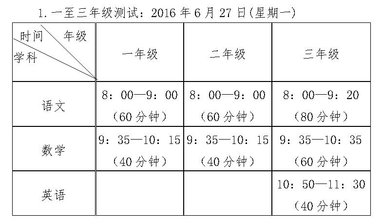 (1)6月27日,一、二、三年级语文、数学,三年级英语