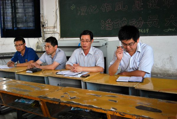为认真贯彻执行宣州区教体局教监【2012】6号《宣州区教体局“深化作风建设年”活动实施意见》的文件精神,加强学校全体教职工作风建设,强化活动的组织领导,水东小学于 6月9日召开专题行政会议,成立了水东小学“深化作风建设年”活动领导小组、活动工作小组。 6月18日下午,领导组召开全体教师大会。会上,副校长徐抗震传达教体局有关文件,接着,校党支部书记杨光升、工会主席柏勇宣传《水东中心小学“深化作风建设年”活动实施方案》,部署工作,全体教师同时签订了《水东中心小学“深化作风建设年”承诺书》。最后,活动领导组组长、校长刘高潮强调:我们签订承诺书的目的是 “提神、提效、提速”,办人民满意的教育。希望大家以此为鉴,克服自身的“慵懒软散”。 此次会议的召开,标志着水东小学“深化作风建设年”活动的全面展开。(程荣亮 吕成龙 报道)