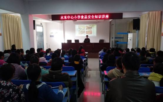 11月23日上午9点宣城市食品药品监督管理局水东管理所所长带领该所的工作人员到水东中心小学开展食品安全知识讲座,该校五年级部分学生和老师参加此次培训。