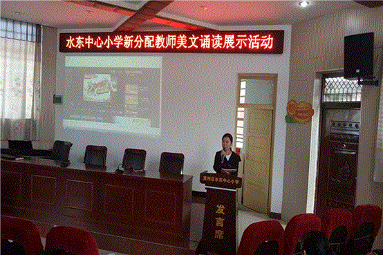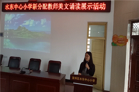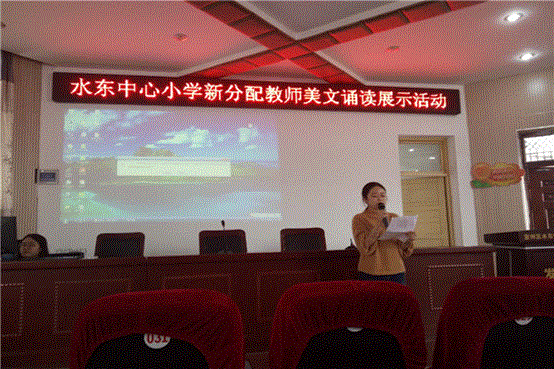 11位教师新分配的教师一一走上讲台展示自己对美文诵读的理解。台下掌声阵阵,老师们情不自禁掏出手机照相、摄影。大家不住议论:新老师分配的老师果然个个实力不凡。