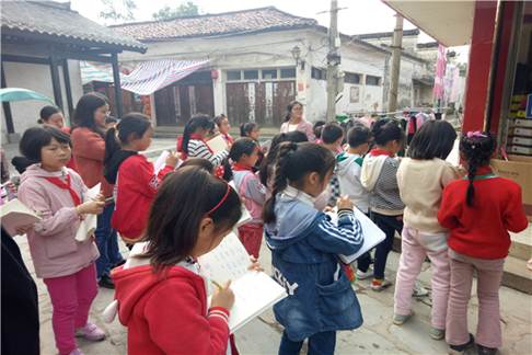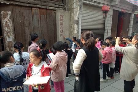 孩子们沿着老街的正街、横街一路找着,就像一群小啄木鸟,仔细地找出藏在树干中的虫子一样,寻找着我们身边的错字。一路下来,每个人都找到两三个错字或者不规范的汉字。