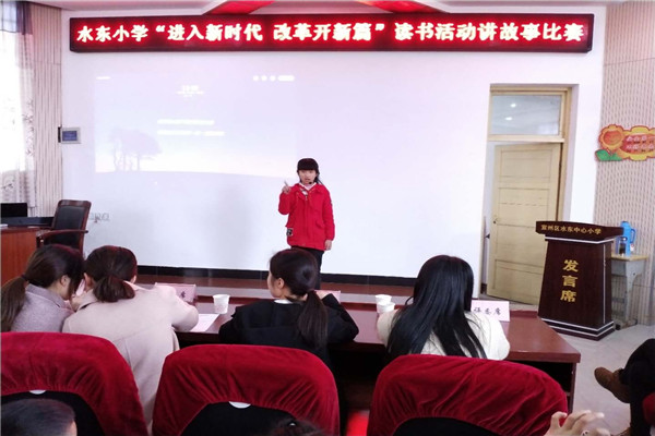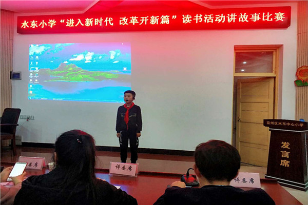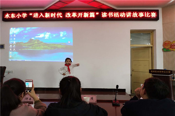 4月9日、10日下午,水东中心小学举行 “进入新时代 改革开新篇”爱国主义教育读书讲故事比赛活动。 整整两个半天里,水东中心小学洋溢着节日般的欢乐,报告厅里孩子们绘声绘色地讲述一个个感人的故事,下课后报告厅大门外挤满了观摩的同学。报告厅里前排评委们认真倾听,报告厅后排坐满了参赛选手,部分家长也赶来助阵。 经过评委们合议,一致推荐周瑾苓、徐赵辉、胡浩淼、王世博四位同学代表学校参加孙埠片比赛。(文/程荣亮 图/李安祥、时维新)