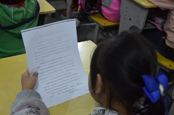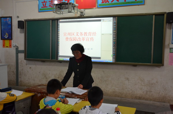 近日,水东中心小学通过多种方式积极开展了一系列义保宣传工作。 为了让家长与学生更清楚此项政策,该校通过召开“三会”(全体教师会、班主任会、班会)、利用电子显示屏标语、向每位学生发放“宣传卡”、向家长开展“民生工程社会公众单项调查问卷”等多种形式向学生及家长宣传这一惠民政策。 学校通过宣传,不仅让广大群众对党的这一惠民政策有了更深入的了解,而且密切了学校、家庭、社会之间的联系,受到了群众欢迎。(吕成龙)