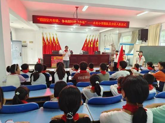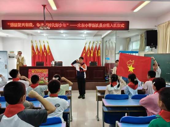 10月13日,是中国少年先锋队建队76周年纪念日。中午,一场充满光荣与梦想的“强国复兴有我,争当新时代好少年”分批入队仪式在水东中心小学小学阶梯教室隆重举行。