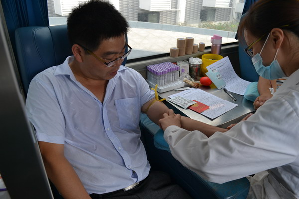 9月9日上午,教师节前夕,水东中心小学又一次组织教师参加义务献血活动。填表、化验、抽血。看着殷红的鲜血从血管里流进采血袋,想着自己的血也许能挽救别人的生命,老师们脸上露出欣慰的笑容。(文/宗良勇 图/杨成俊)